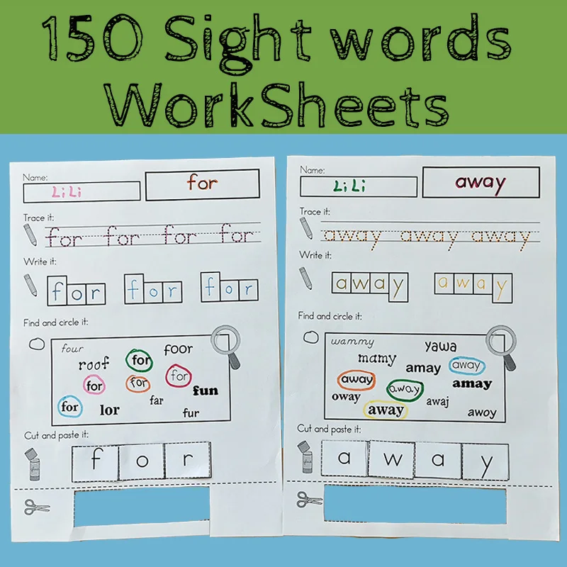 150 Sight Words DIY Wooksheet Children Learning English language Exercise reading coloring books fo