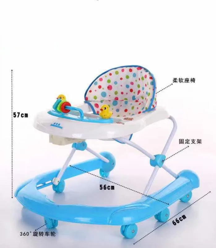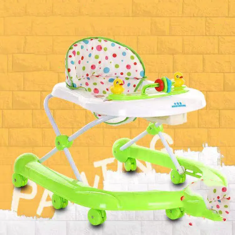 Foldable Multi-color Baby Walker with Rubber Wheels Adjustment Child Anti-rollover Learning Walker