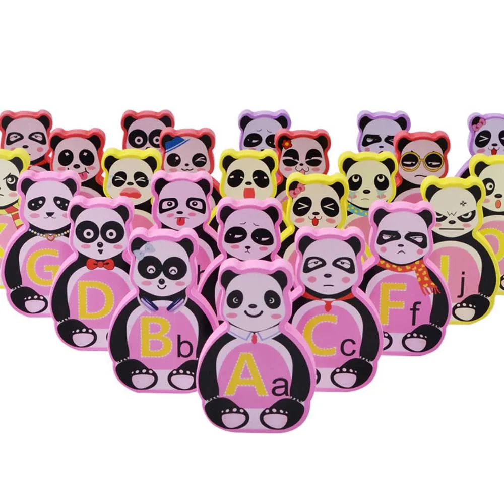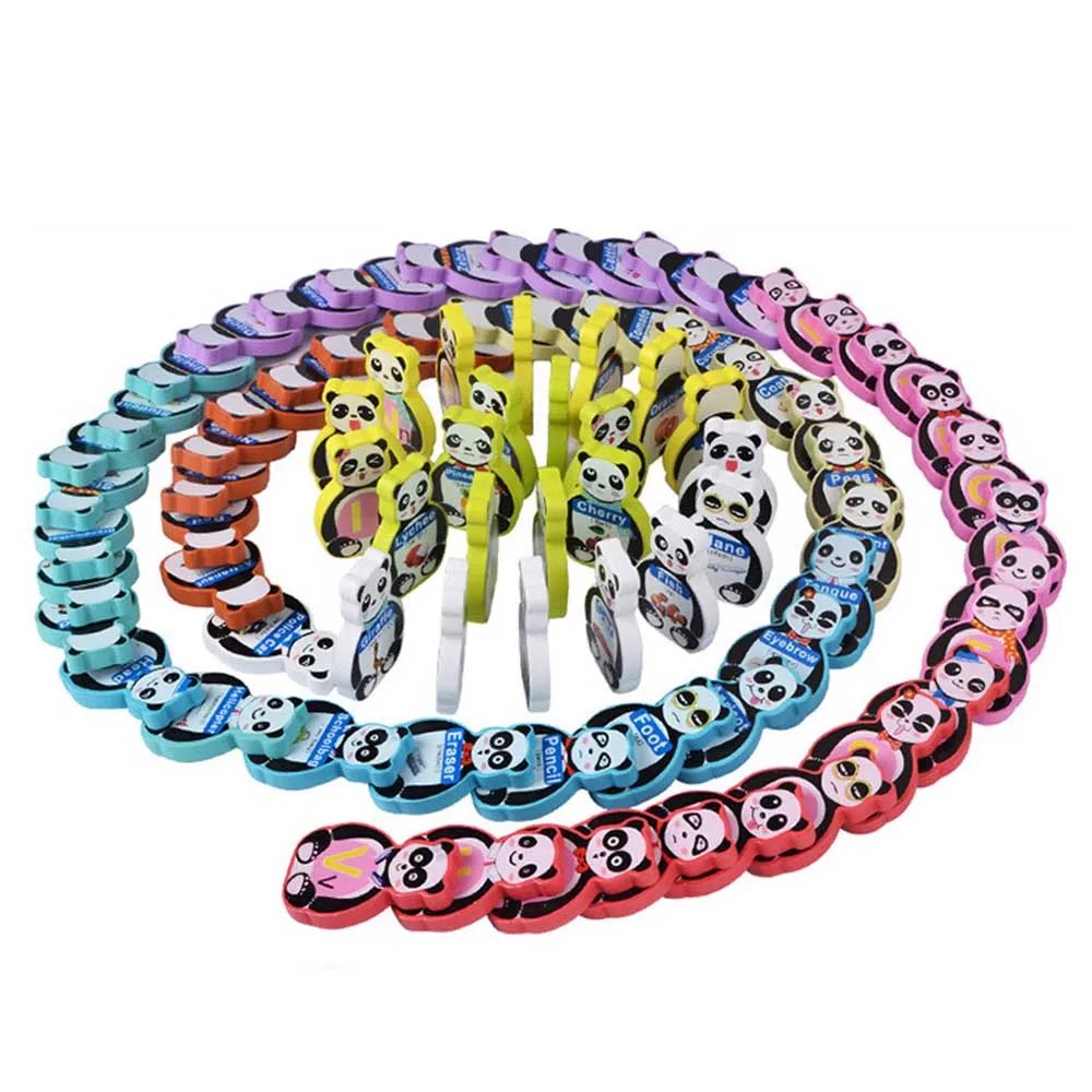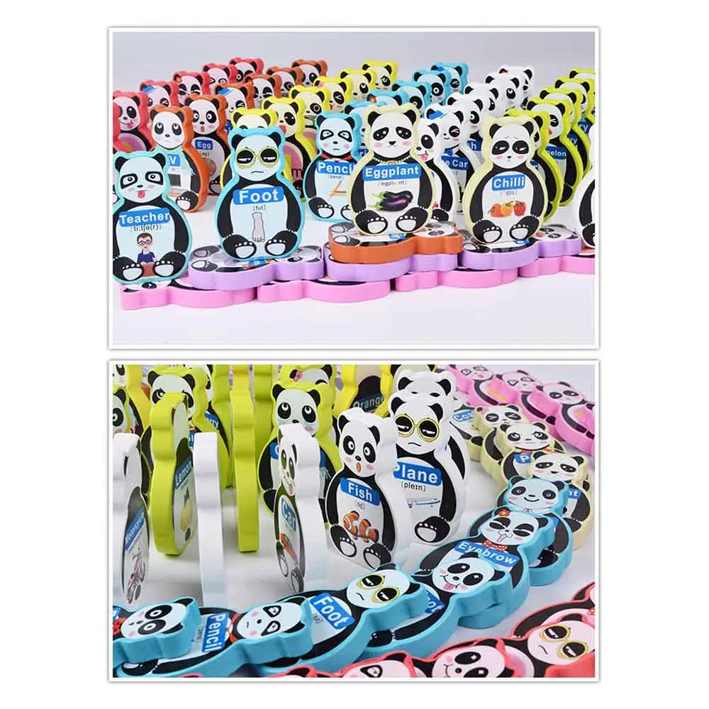 80 Pcs Children Wooden Blocks Domino Word Building Blocks Panda English Learning Building Blocks To