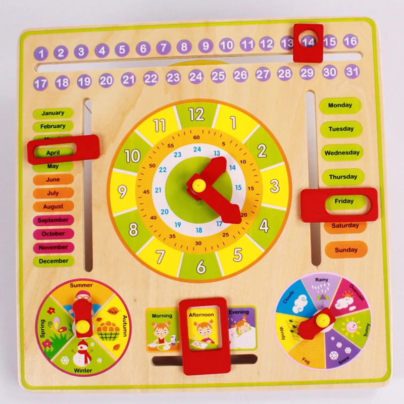 Wooden Calendar Kids Learning Clock Toy Multifunctional Wood Board Montessori Preschool Time Cognit